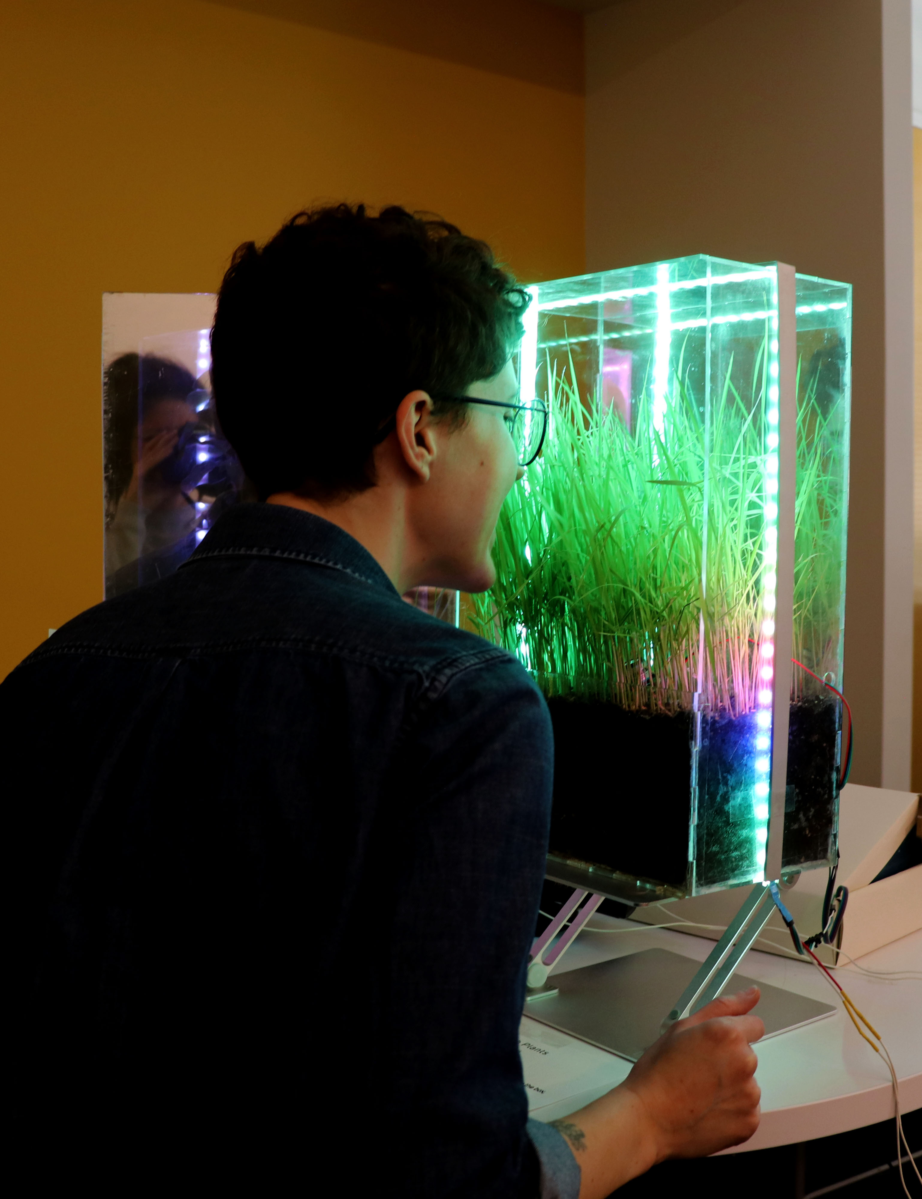 Sylvia Janicki, Noura Howell, Anne Sullivan, Nassim Parvin. “Sensing Bodies: Reflections on Human-Plant Relationships” Demonstrated at the GVU 30th Anniversary Event, Georgia Institute of Technology, Atlanta, GA, November 2nd, 2022. (link)